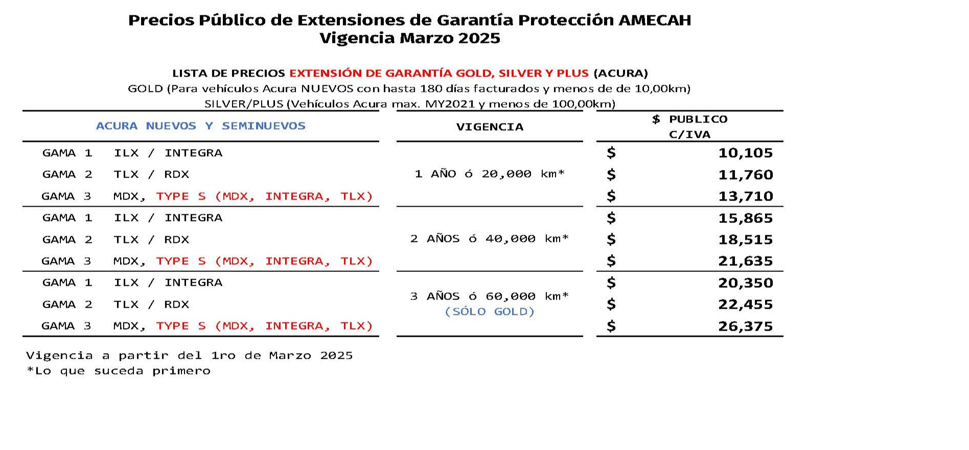•Extensión de Garantía GOLD * (Autos Nuevos ó vehículos con menos de 10,000km ó 180 días)